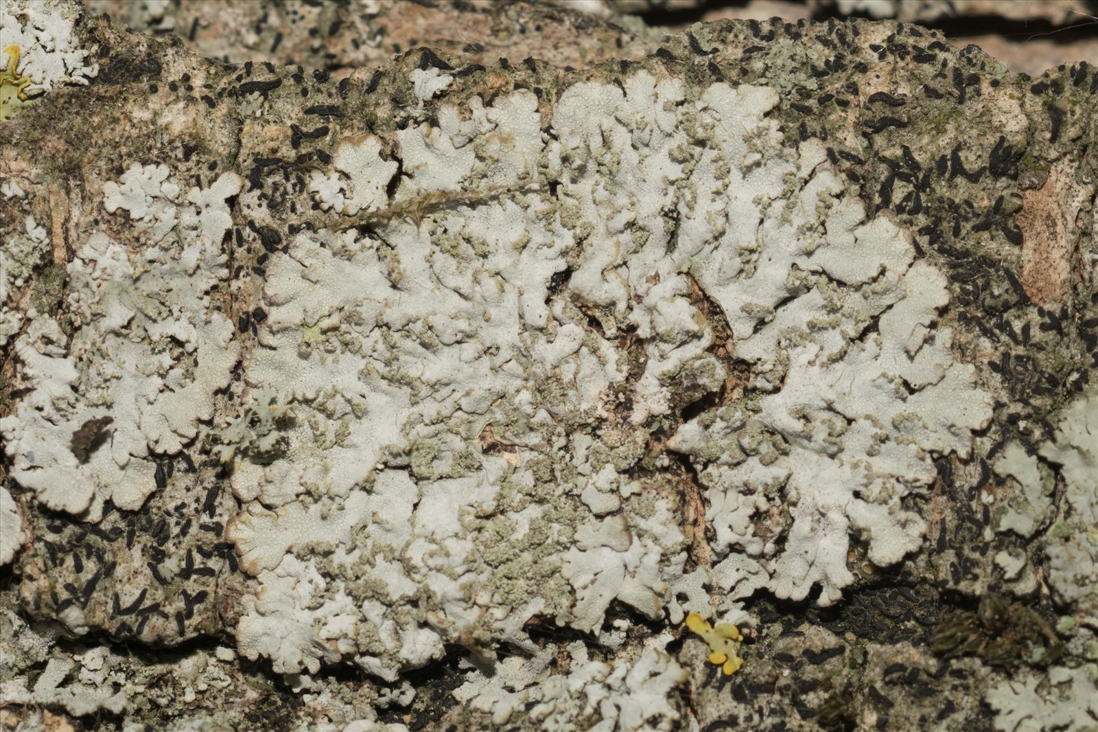 Ce lichen corticole est assez commun sur des arbres isolés. Le thalle est gris à brun. Il est sorédié. Il verdit à l'humidité. La face supérieure est nettement pruineuse. Les rhizines à la face inférieure du thalle sont généralement blanches, du moins peu colorées, Elles sont simples (Pas en forme d'écouvillons comme sur certaines espèces du genre). Les soralies sont granuleuses et blanchâtres. Ce lichen est très commun en France, on le trouve sur des arbres souvent isolés. Il n'est pas rare de le voir en milieu urbain car il est relativement tolérant à la pollution.