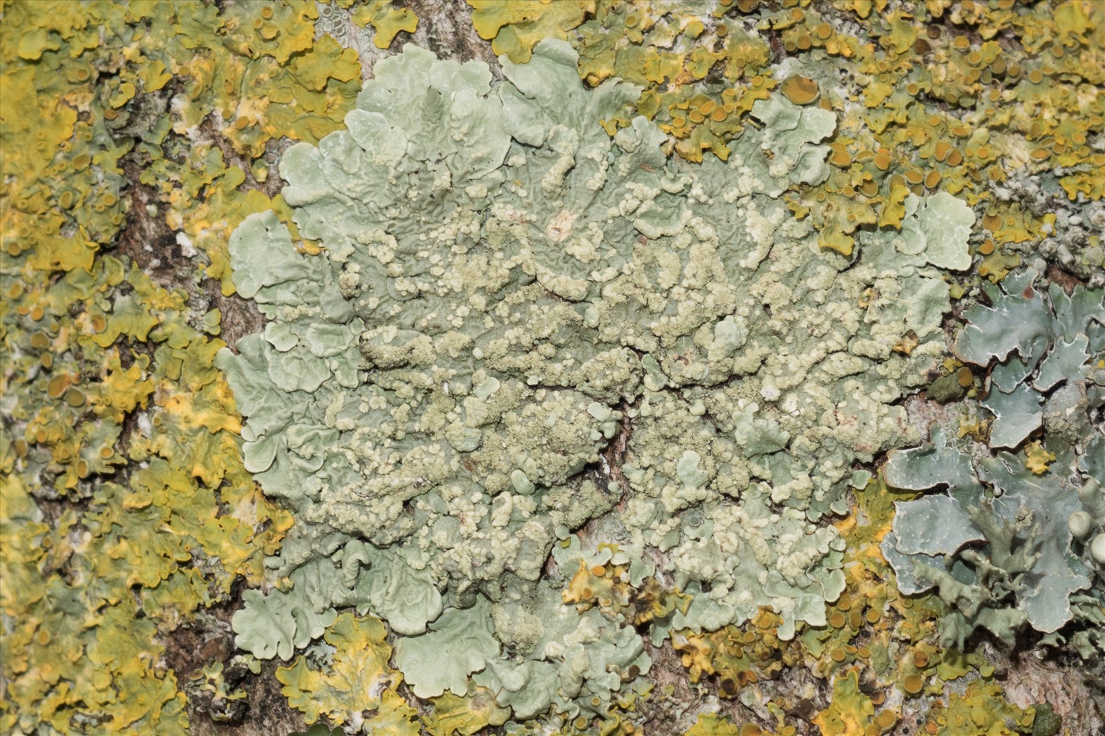 Ce lichen est corticole. On le trouve généralement dans les secteurs plus humides. La couleur du thalle est jaune verdâtre. La face inférieure est de couleur plutôt sombre et comporte des rhizines simples. Les soralies sont généralement circulaires. La réaction colorée à K+ rouge pour la médulle permet de le différencier avec assurance de Flavoparmelia caperata qui a une réaction jaune. Le thalle est généralement de plus petite dimension. Les lobes du thalle sont également plus petits et sont plus adhérents au substrat.