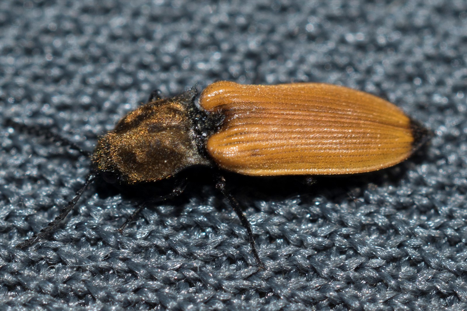 Ce coléoptère possède des élytres de couleur brun clair (suivant la lumière, il peut paraître orangé) sauf à l'apex qui est noirâtre. Elles sont finement ponctuées en lignes. La femelle a des antennes dentées alors que le mâle possède des antennes pectinées. Les larves se développent sur les racines d'arbustes. Les adultes se nourissent de fleurs de callunes ou de bruyères, de bouleau.