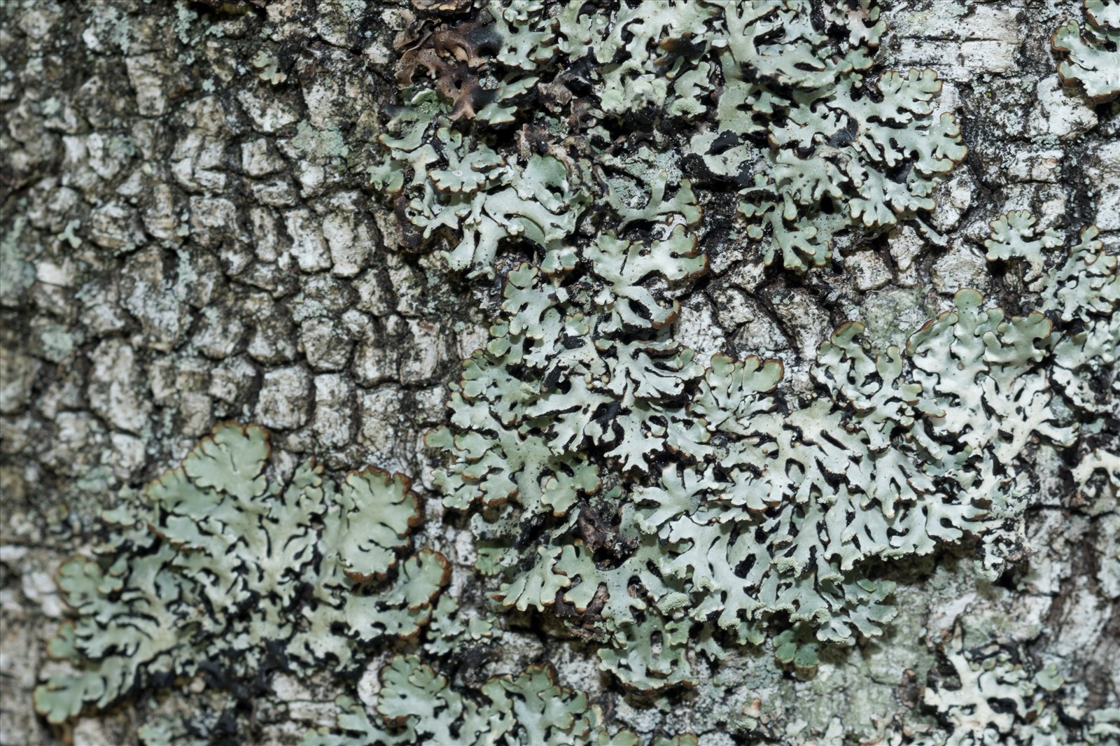 Ce lichen est corticole. Son thalle foliacé se présente sous forme d'une rosette, de couleur gris bleuâtre. Il comporte de nombreux lobes plus ou moins gonflés mais pas jusqu'à la forme d'un tube. Ses lobes sont luisants. Ce lichen présente des soralies terminales très pâles en forme de lèvre (=labriforme). La face inférieure du thalle est noire brillante et ne comporte pas de rhizines. La marge est un peu plus brunâtre que noire. Les apothécies sont rarement observées. Le thalle se colore à jaune à K+. La médulle n'a aucune réaction colorée sauf pour KC+ (Rouge brun) et P+ (Orange à rouge). Ce lichen est assez commun sur feuillus et conifères, en écologie acidophiles.
